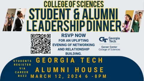 For more information or inquiries, reach out to the College of Sciences Career Educator, James Stringfellow, at james.stringfellow@gatech.edu. Please include "Leadership Dinner" in the subject line when reaching out.
